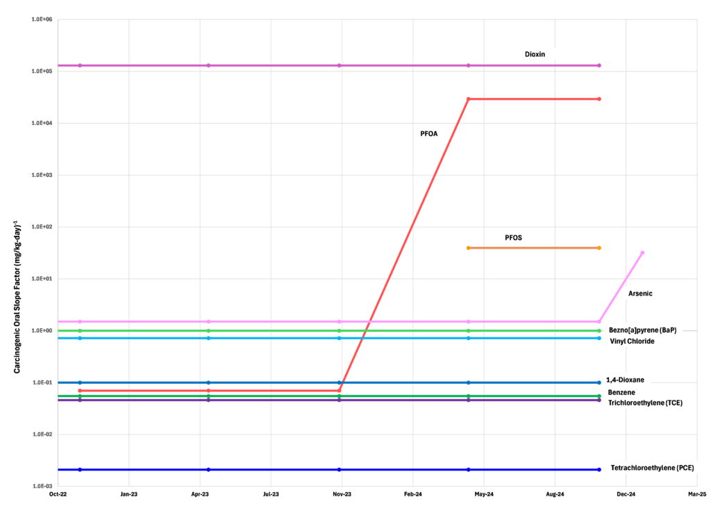 Timeline 2 – Cancer Potency Values for PFAS and Other Chemicals
